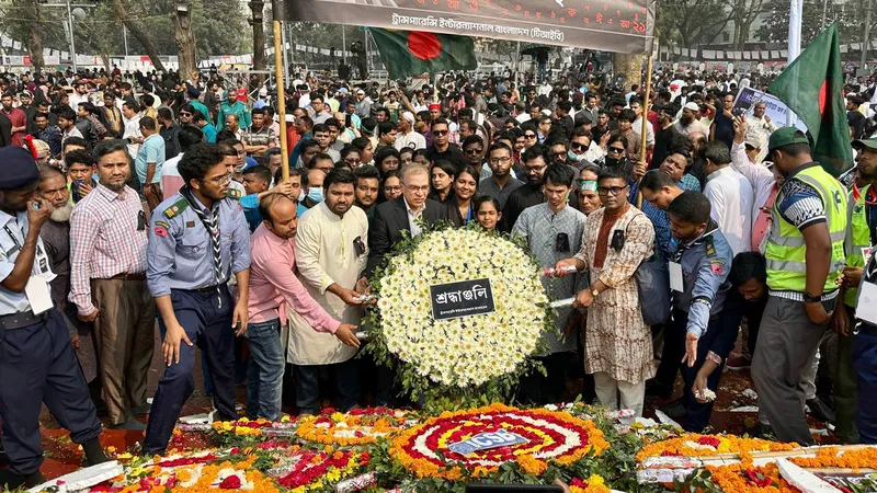 এর আগে শহীদ মিনারে ফুল দিয়ে শ্রদ্ধা জানান রাষ্ট্রপতি মো. সাহাবুদ্দিন ও অন্তর্বর্তী সরকারের প্রধান উপদেষ্টা ড. মুহাম্মদ ইউনূস। রাষ্ট্রপতি ও প্রধান উপদেষ্টার শ্রদ্ধা নিবেদনের পর প্রধান বিচারপতি সৈয়দ রেফাত আহমেদের নেতৃত্বে সুপ্রীম কোর্টের আপিল বিভাগ ও বিচার বিভাগের বিচারপতিরা শ্রদ্ধা জানান। তাদের পরে শ্রদ্ধা জানান অন্তবর্তীকালীন সরকারের উপদেষ্টারা।