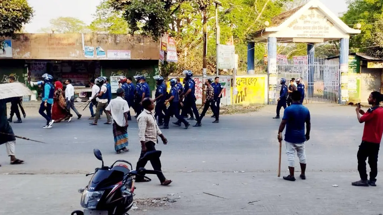 বিষয়টি জানতে পেরে পূর্ব থেকে নান্দাইল উপজেলা নির্বাহী কর্মকর্তা, উপজেলা সহকারী কমিশনার (ভূমি) ফয়জুর রহমান, অতিরিক্ত পুলিশ সুপার গৌরীপুর সার্কেল দেবাশীষ কর্মকার ও নান্দাইল মডেল থানার ওসি তদন্ত মোজাহিদুল ইসলাম নান্দাইল সরকারি শহীদ স্মৃতি আদর্শ ডিগ্রি কলেজ মাঠে অবস্থান করছিলেন।