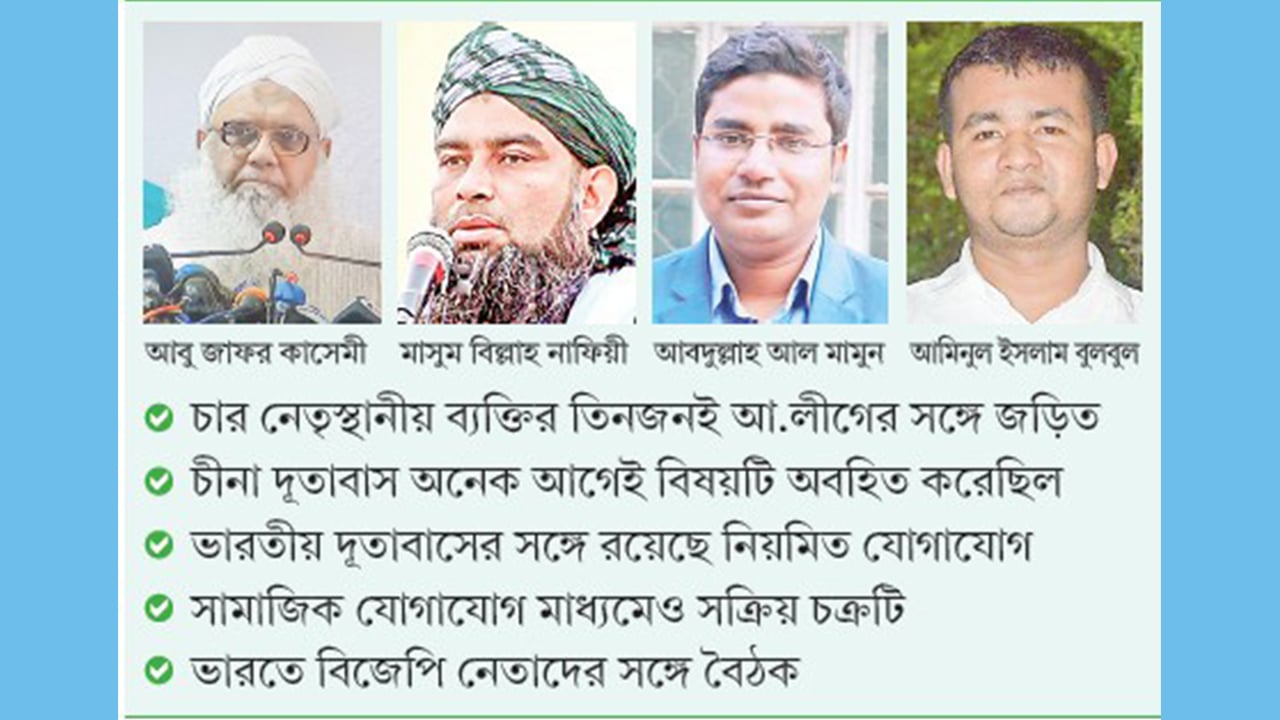 সম্মিলিত ইসলামী ঐক্যজোটের আবু জাফর কাসেমী চীন ইস্যুতে অন্যতম সক্রিয় বক্তা ছিলেন। ভারতের দেওবন্দ মাদরাসায় পড়াশোনা করা এ নেতা দীর্ঘদিন ভারতে অবস্থান করেছেন। অন্যদিকে, ওলামা লীগের সদস্যসচিব মুফতি মাসুম বিল্লাহ নাফিয়ীও আওয়ামী লীগের ধর্মবিষয়ক উপকমিটির সদস্য এবং বিএসএএফের প্রধান সমন্বয়ক ও সভাপতি। তিনিও বিজেপির কয়েকজন নেতার সঙ্গে একাধিকবার সাক্ষাৎ করেছেন। তিনি ইসলামী আন্দোলন বাংলাদেশের নারায়ণগঞ্জ মহানগরের সভাপতি হওয়ায় স্থানীয় লোকজন দিয়ে নারায়ণগঞ্জসহ অন্যান্য জেলায় নিয়মিত চীন বিরোধী কর্মসূচি আয়োজন করতেন।