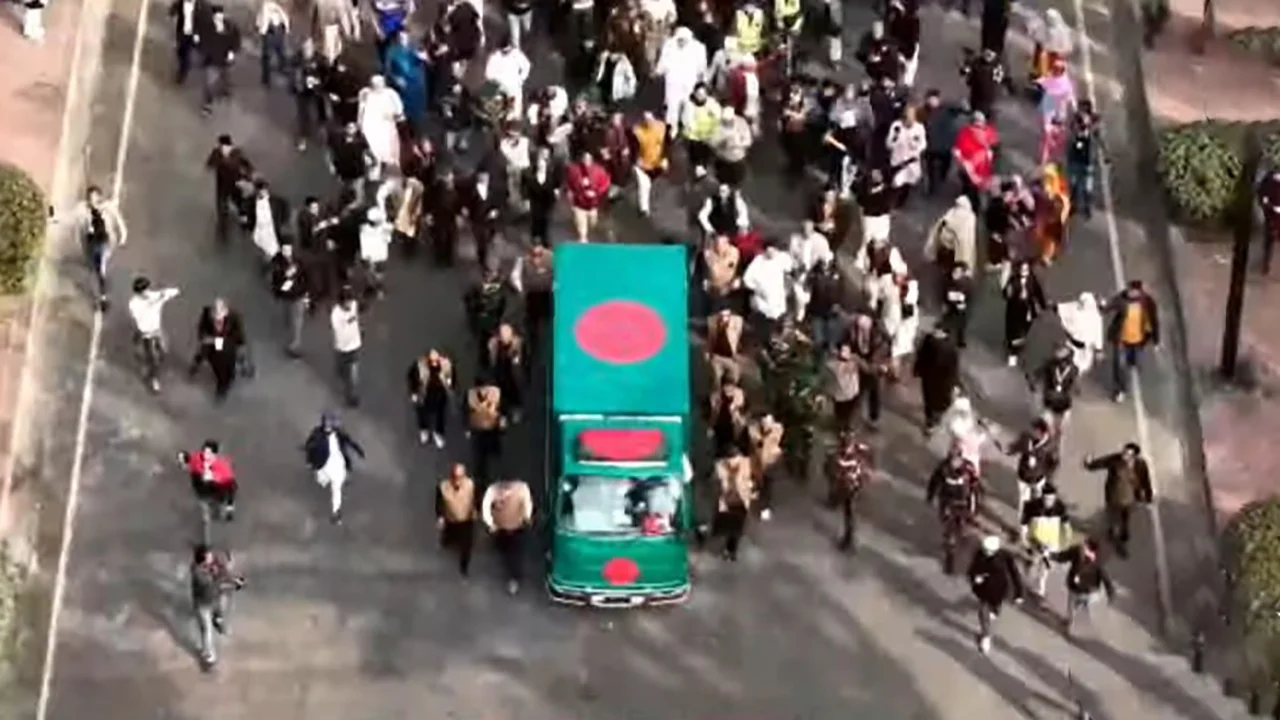 সাবেক প্রধানমন্ত্রী বেগম খালেদা জিয়ার লাশবাহী গাড়ি বহর জানাজাস্থলের দিকে ধীরে ধীরে অগ্রসর হচ্ছে। বুধবার দুপুর ২টার দিকে রওয়ানা দেয় এই গাড়ি বহর। মানিক মিয়া এভিনিউ এর যেখানে লাশ রাখা হবে সেই দিকে এগিয়ে যাচ্ছে তার লাল সবুজ গাড়ি।